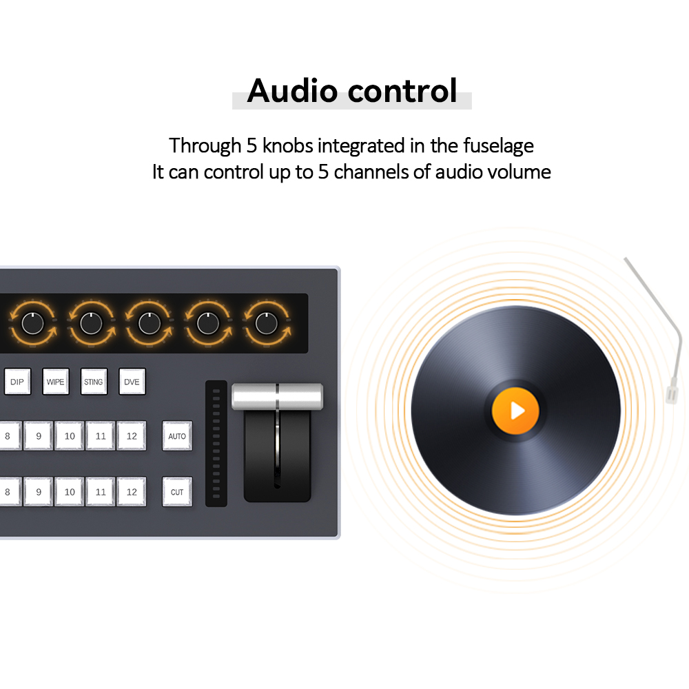 | Transition control | Automatic transition, hard cut, T-Bar |