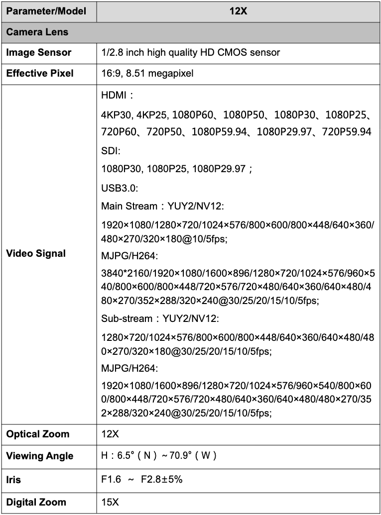 UHD4K12X PTZ กล้อง SDI HDMI USB IP สดสตรีมมิ่ง 12X ซูมออปติคอล 4K 30fps รองรับ PoE