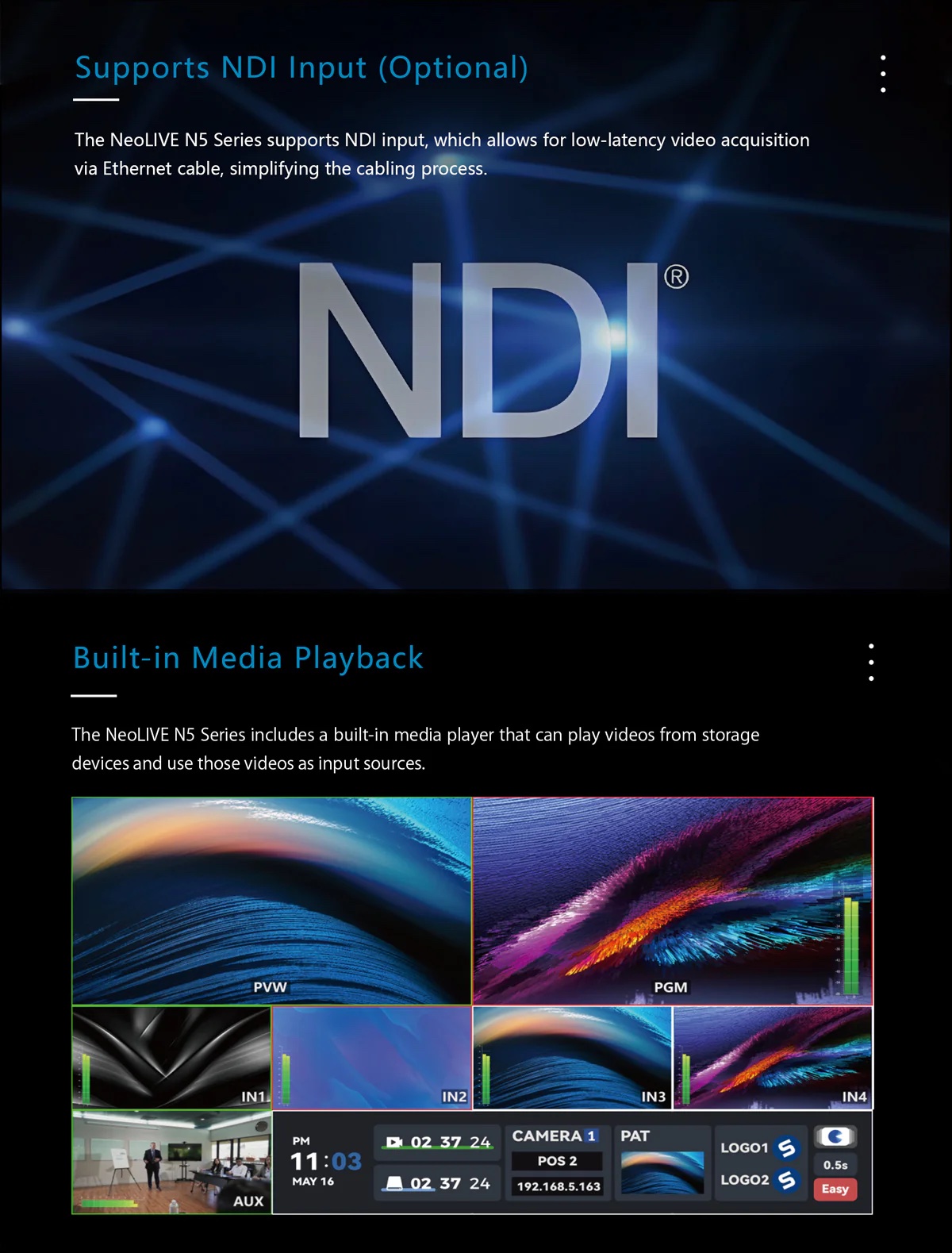 NeoLIVE N5 ซีรีส์ ขอแนะนำเครื่องสลับสัญญาณออกอากาศแบบมัลติฟังก์ชันรุ่นใหม่ที่อัปเกรดแล้ว